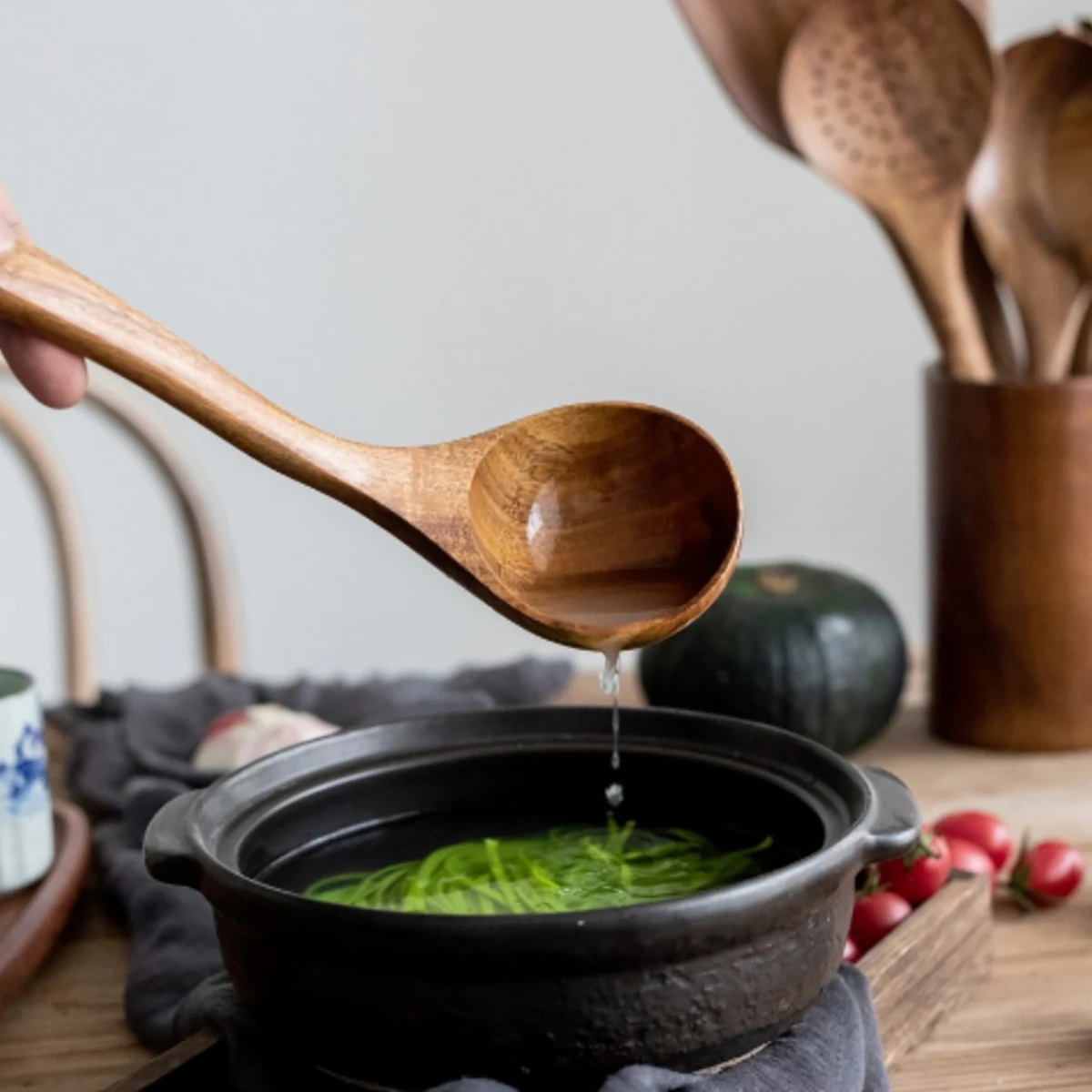 Upgrade your kitchen essentials with this beautifully crafted wooden cooking utensil set, designed for both style and functionality. This all-in-one set includes spatulas, spoons, a salad fork, and stirring tools, giving you everything you need for cooking, baking, and serving. Made from high-quality natural wood, each piece is gentle on cookware, preventing scratches on non-stick surfaces while ensuring durability for everyday use. The smooth, comfortable handles provide a firm grip, making food preparation easier and more enjoyable. It also comes with a convenient storage bucket to keep your utensils neatly organized and within reach. The timeless wooden design adds a warm and rustic touch to any kitchen décor. Easy to clean and maintain, this set is perfect for both beginner cooks and experienced home chefs. Whether you’re sautéing, mixing, or serving, this versatile utensil set is a reliable companion for all your culinary needs.